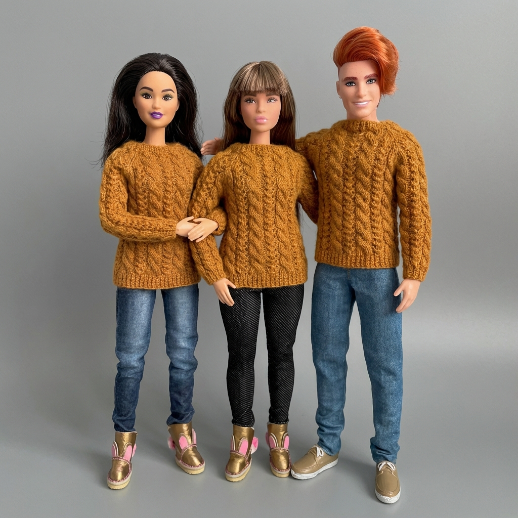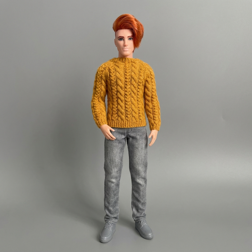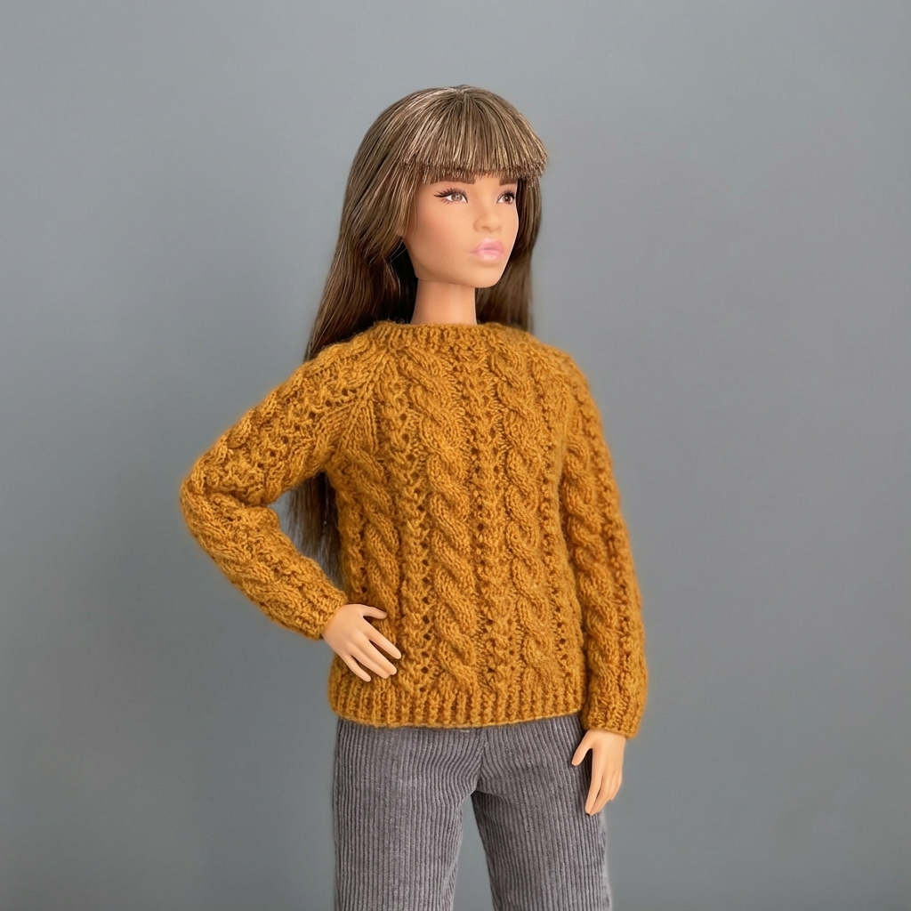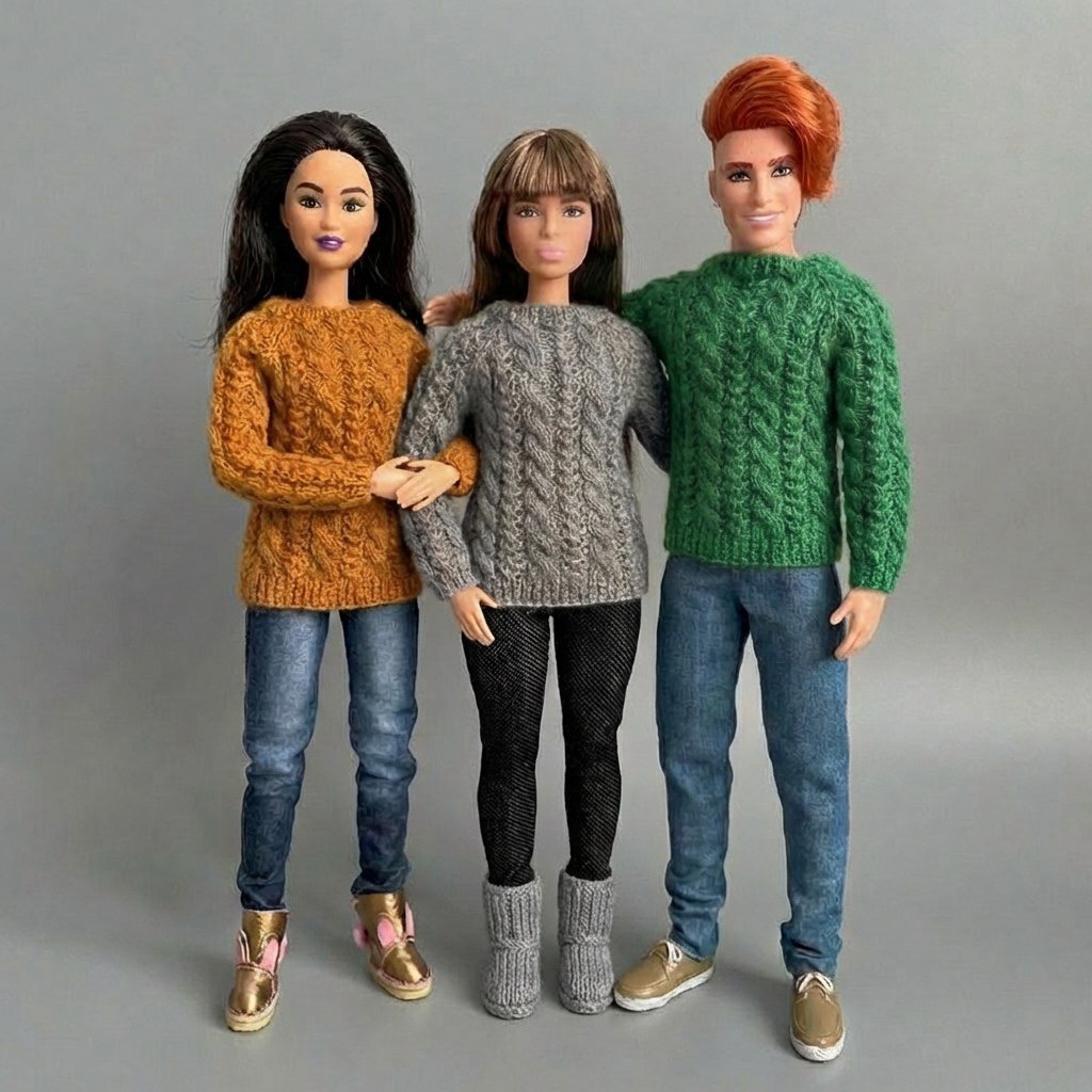 Мастер-класс по вязанию спицами. Джемпер «Ажур и косы» для Барби и Кена.