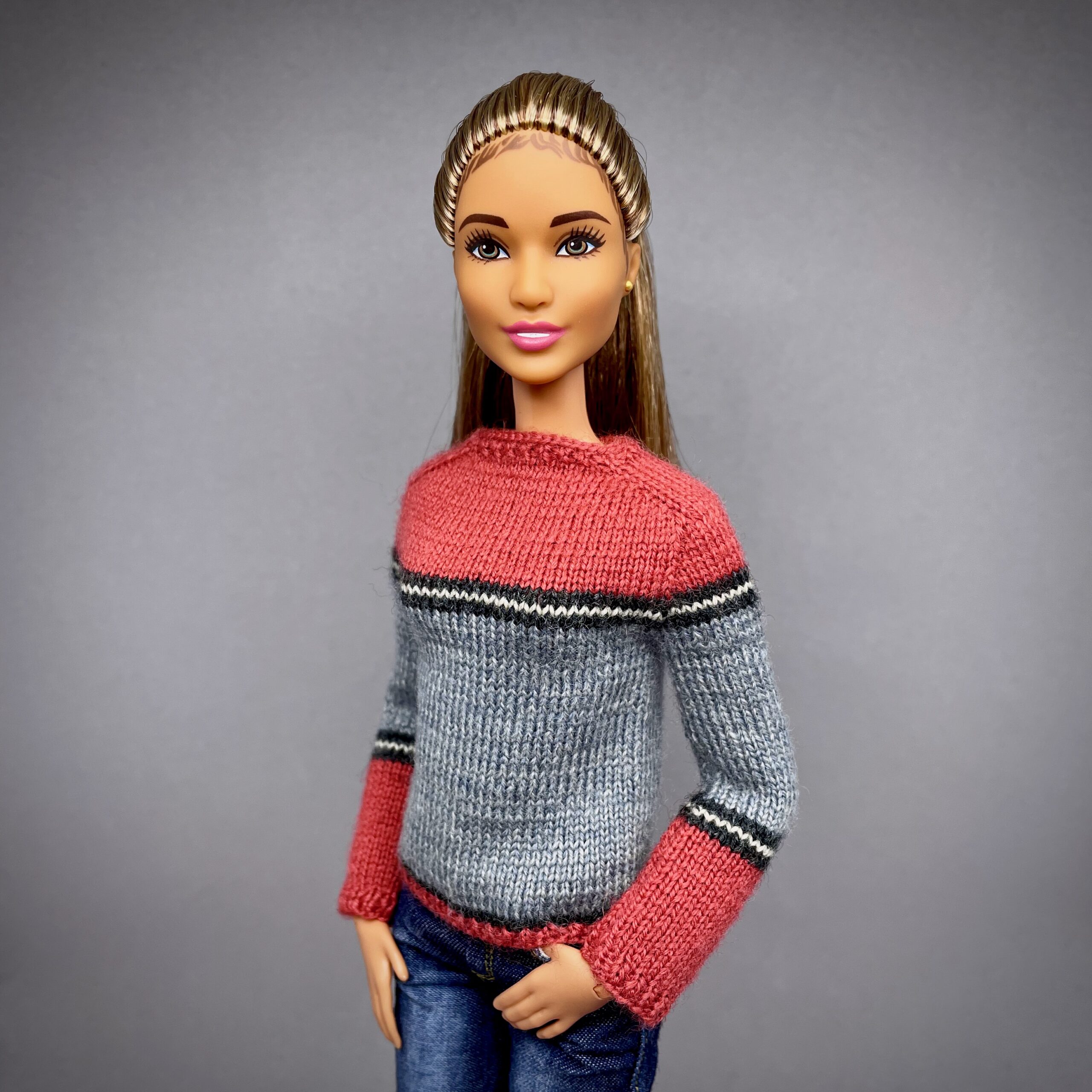 Мастер-класс по вязанию спицами. Джемпер Колор-­блок для стандартной Барби.