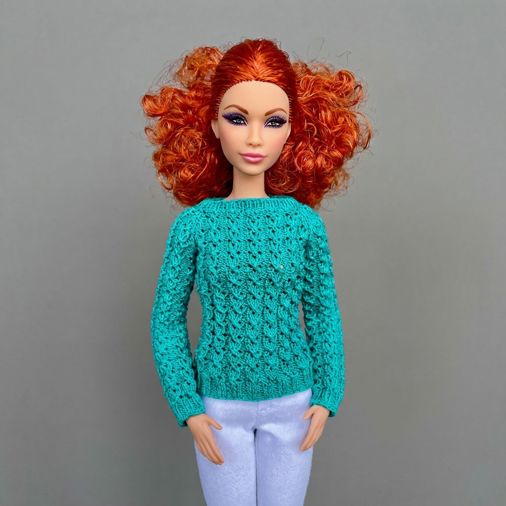 Мастер-класс по вязанию спицами. Джемпер «Морской бриз» для Барби.