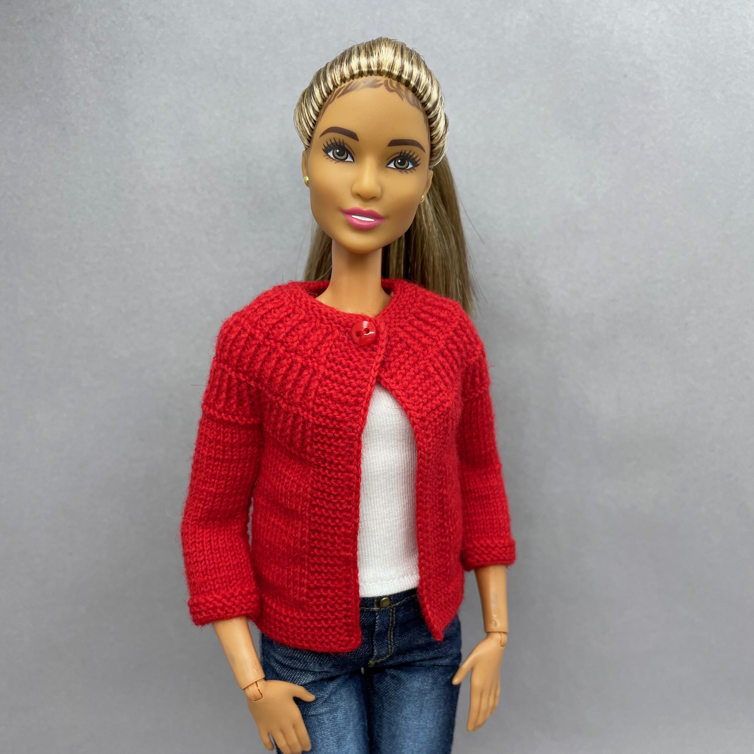 Мастер-класс по вязанию спицами. Кардиган «Оригинальный» для Барби.