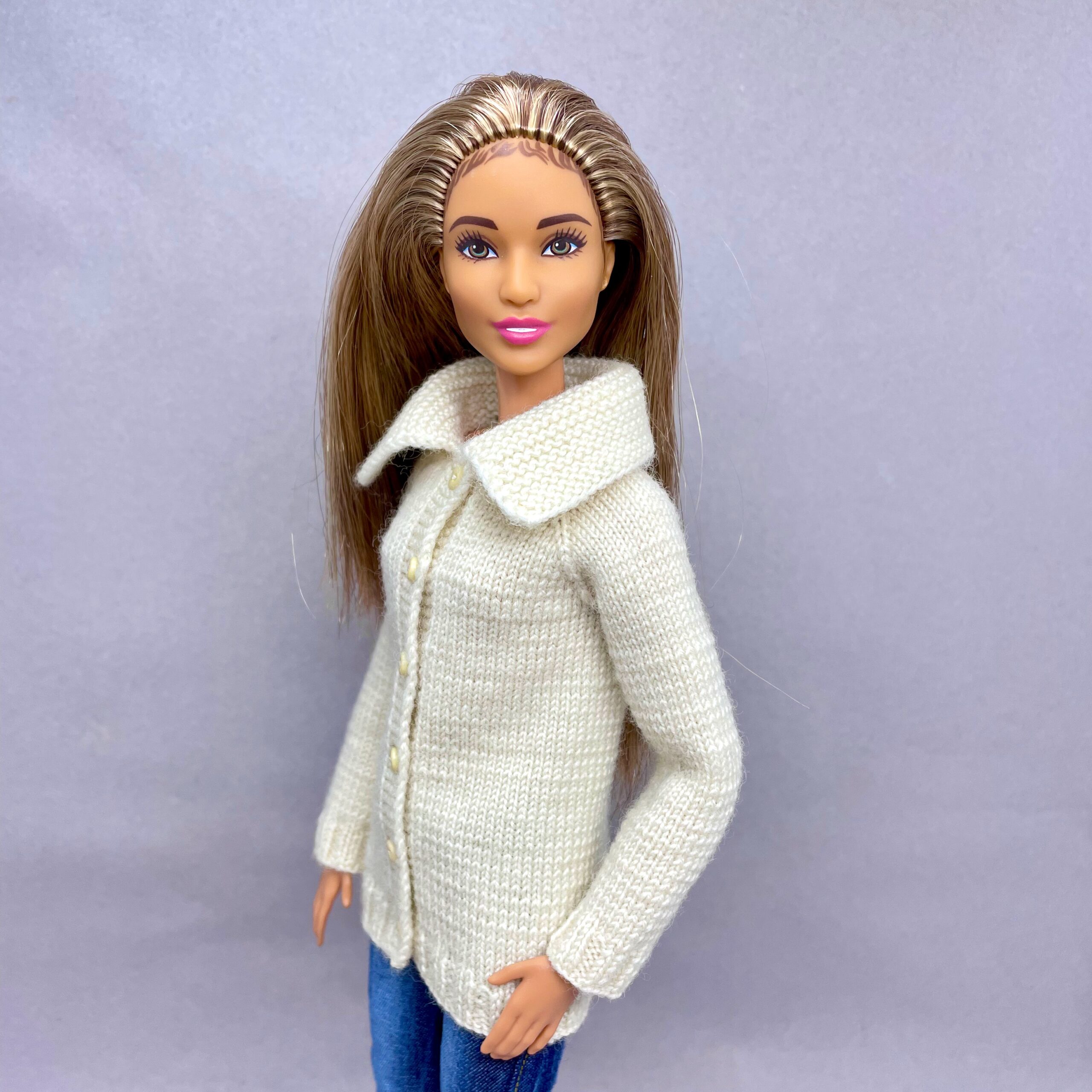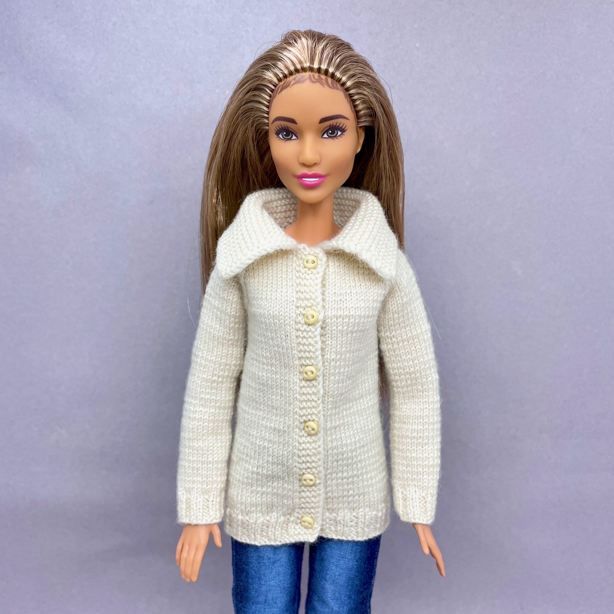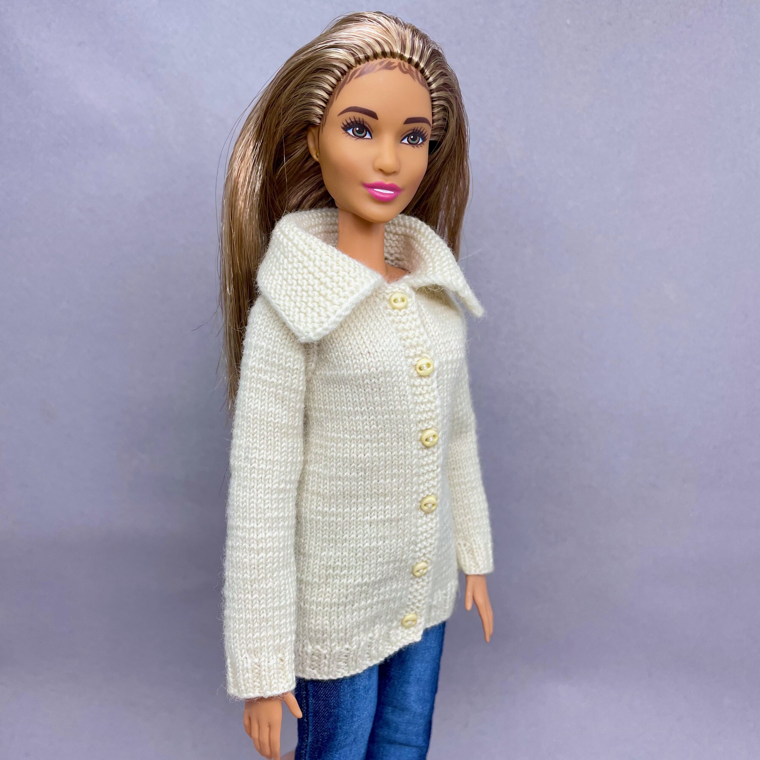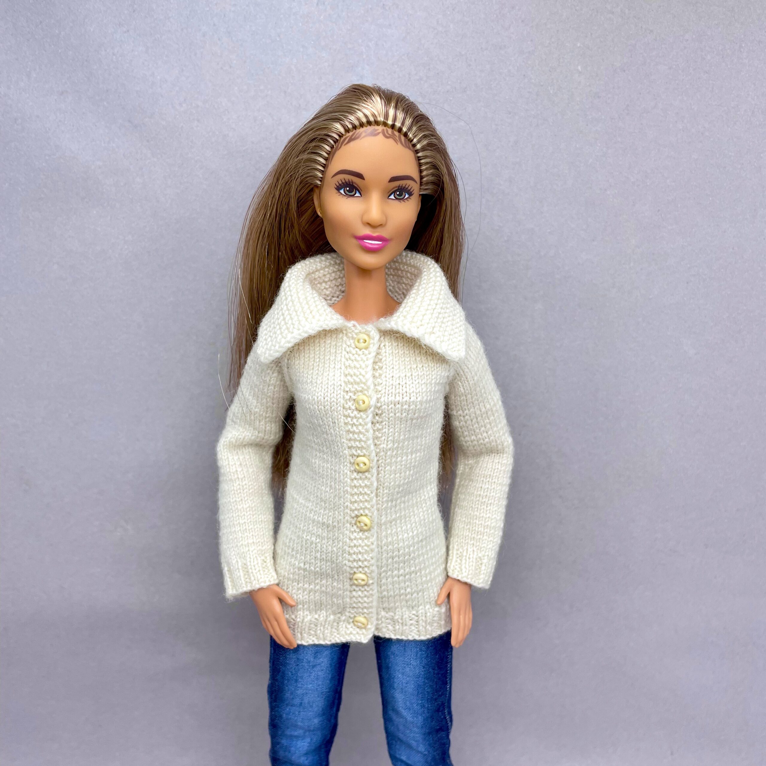 Мастер-класс по вязанию спицами. Кофта с воротником для стандартной Барби.