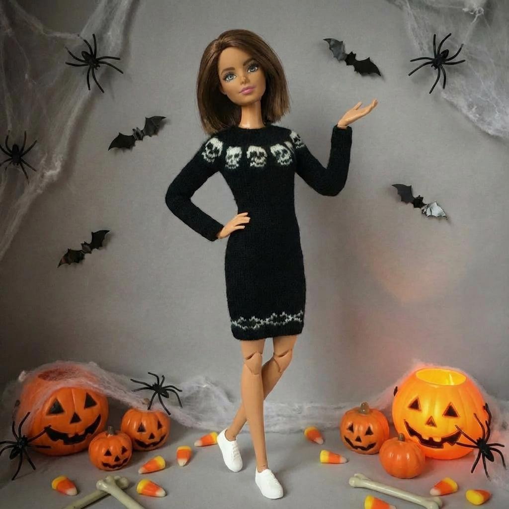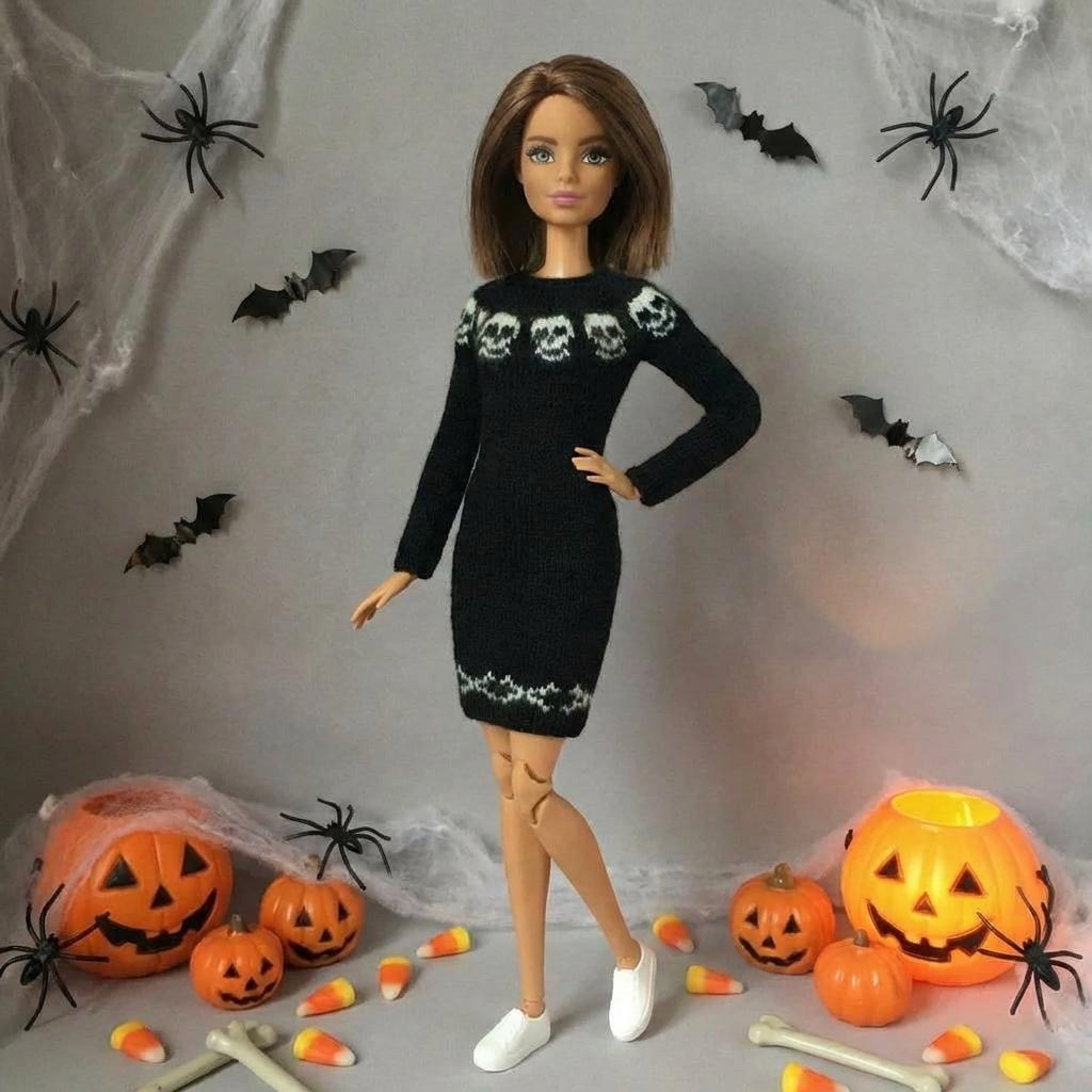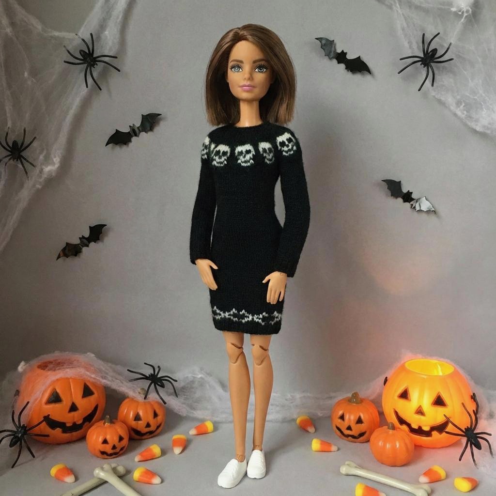 Мастер-класс по вязанию спицами. Платье «Хеллоуин» для стандартной Барби.