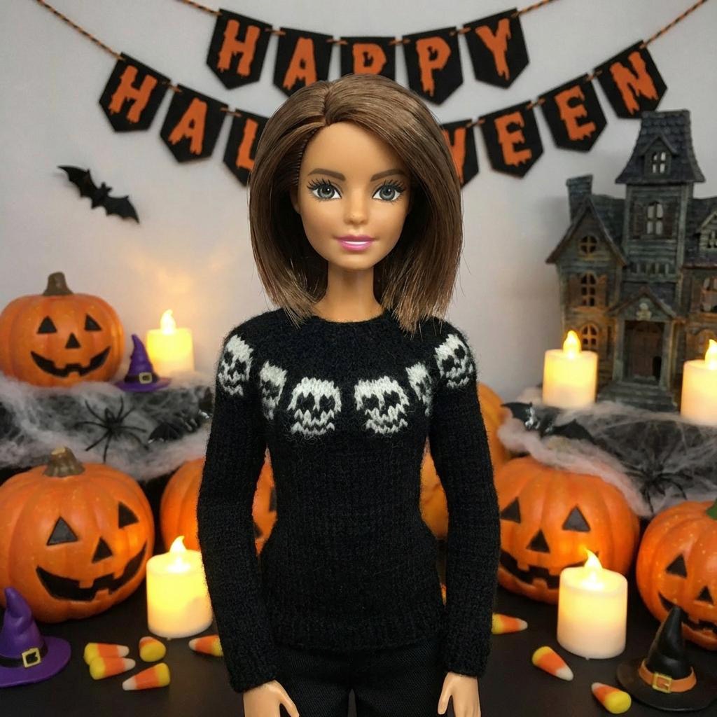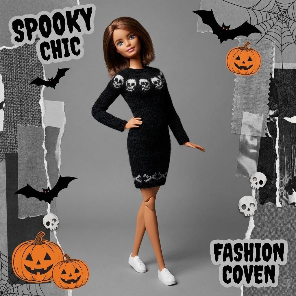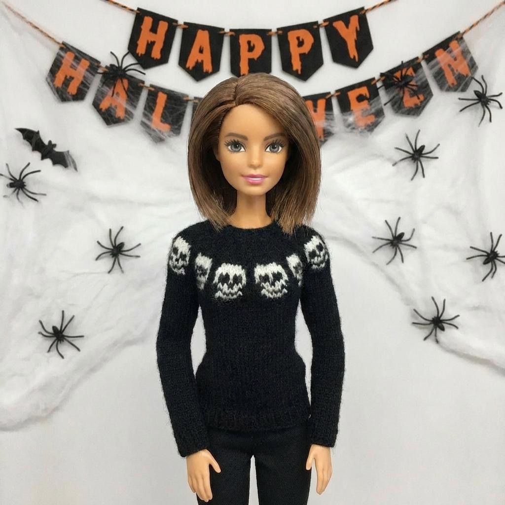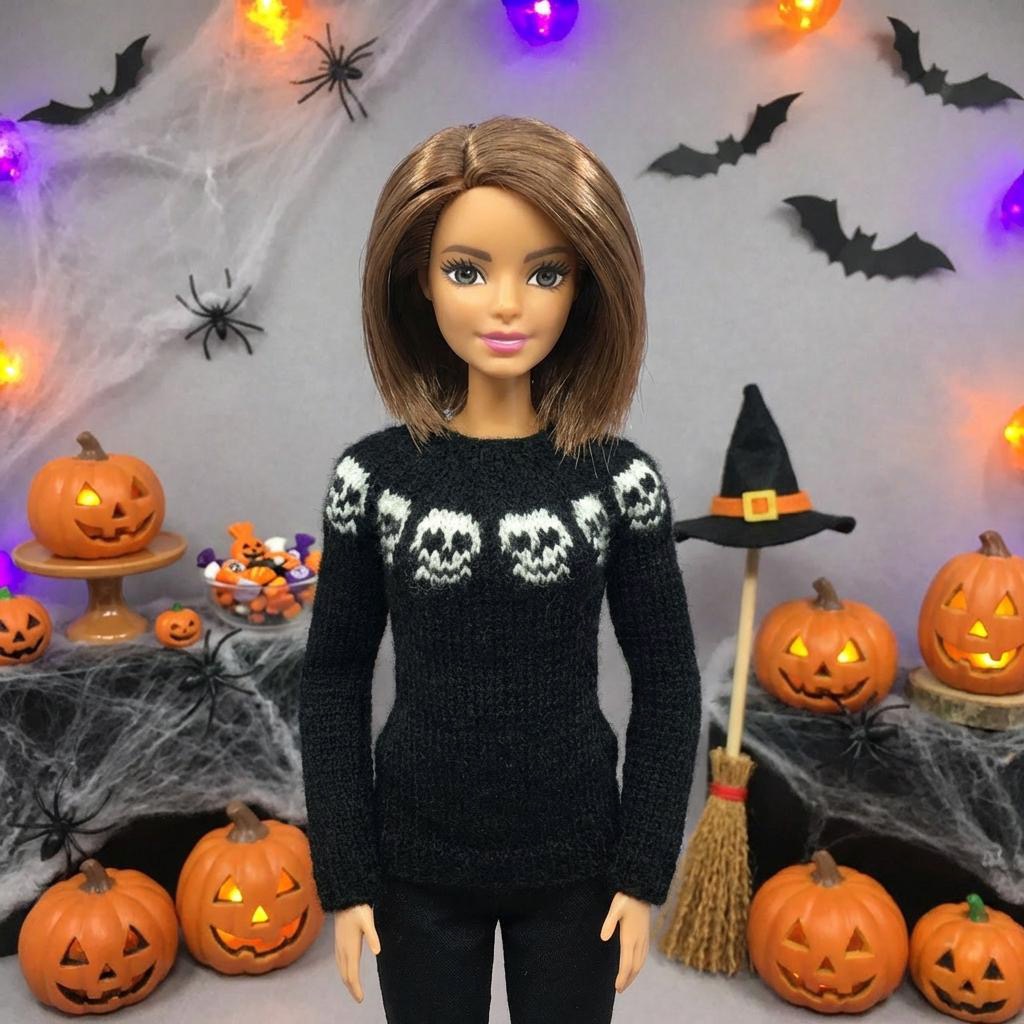 Мастер-класс по вязанию спицами. Платье «Хеллоуин» для стандартной Барби.