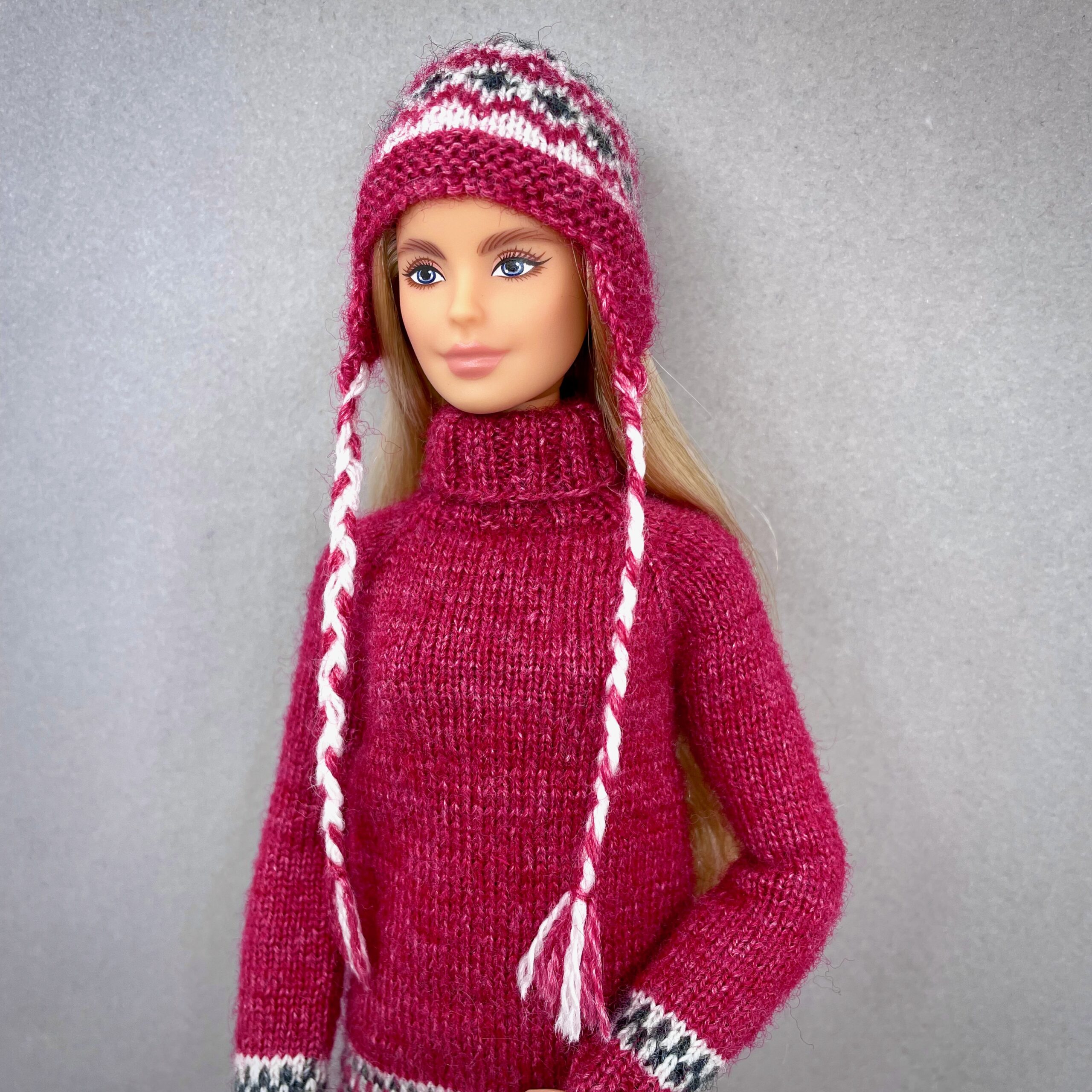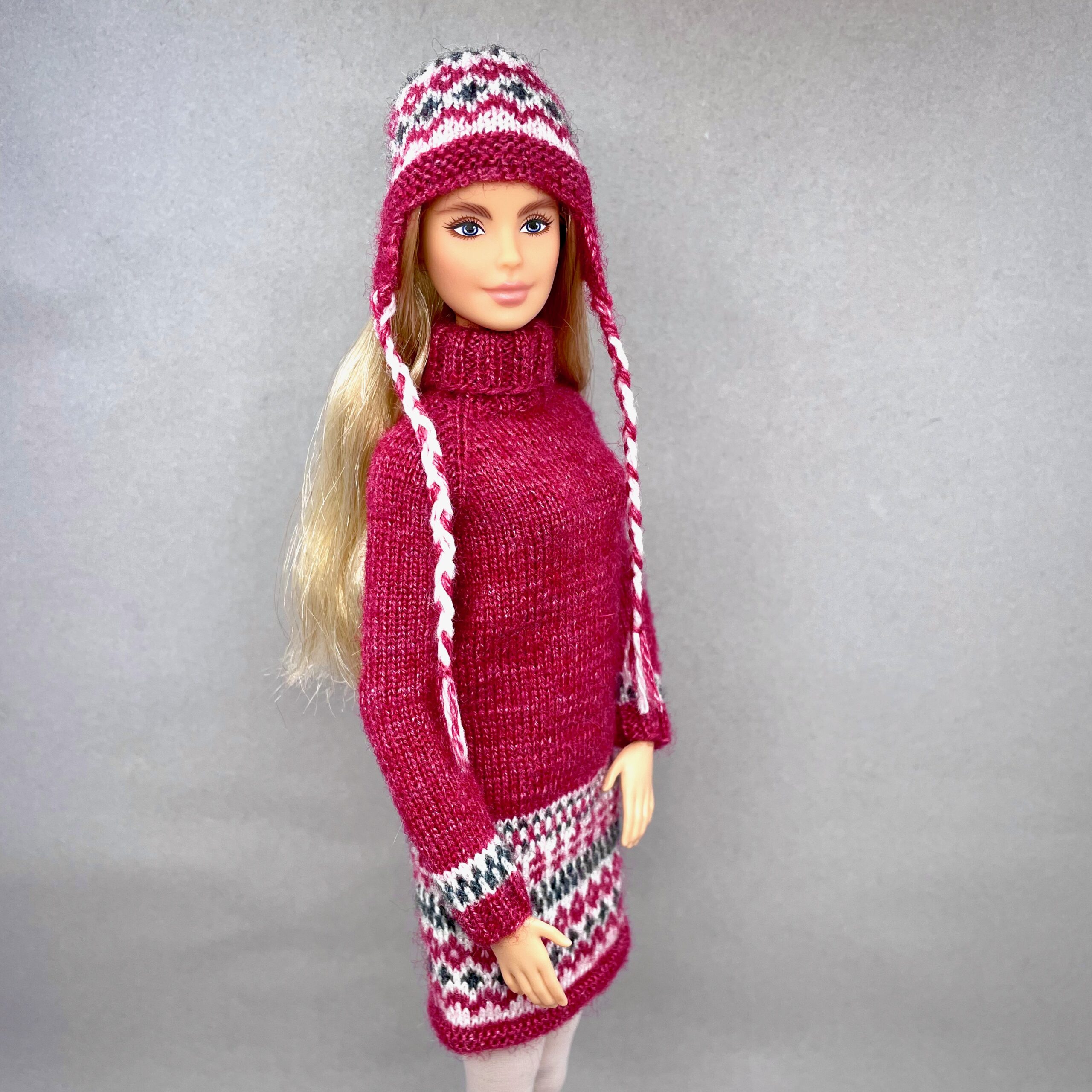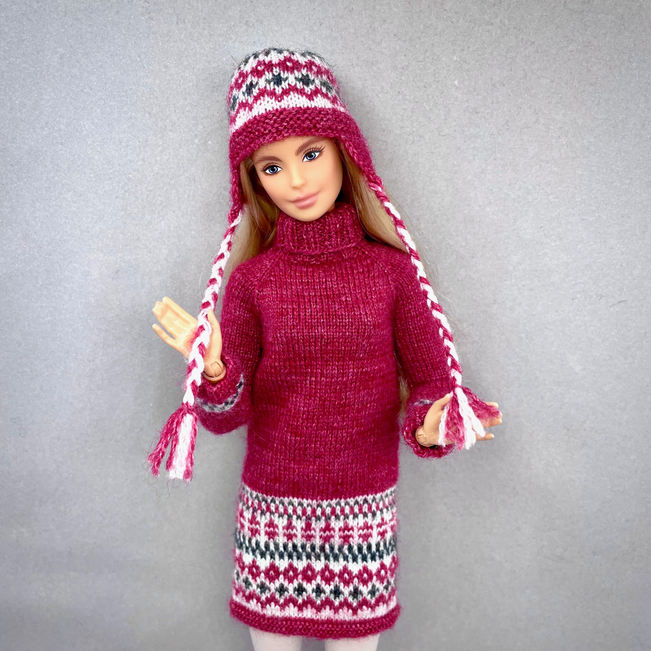 Мастер-класс по вязанию спицами. Платье и шапка «Скандинавия» для стандартной Барби.