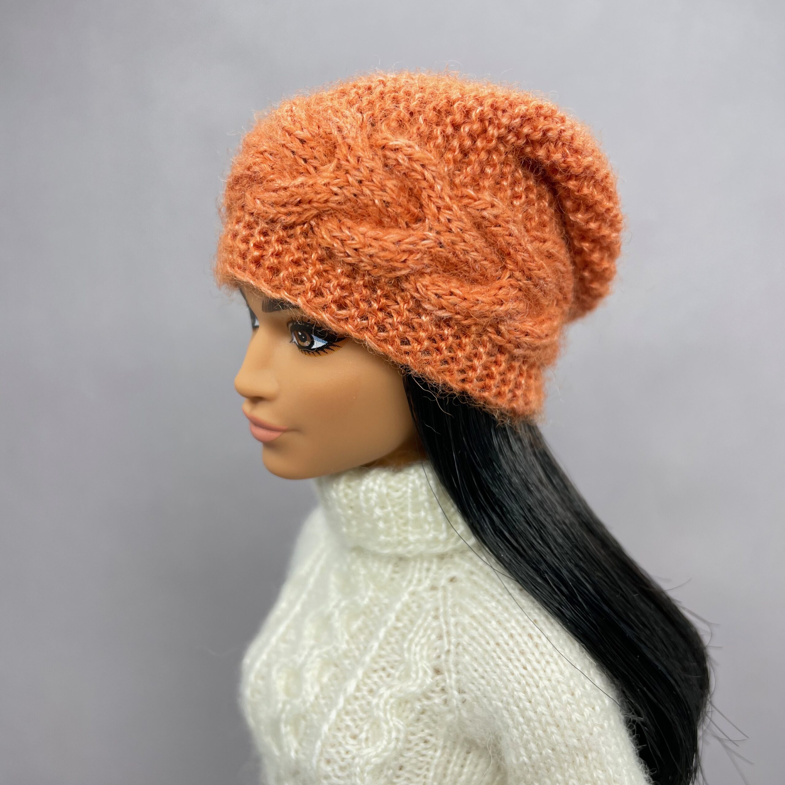 Мастер-класс по вязанию спицами. Шапка с косой для Барби.