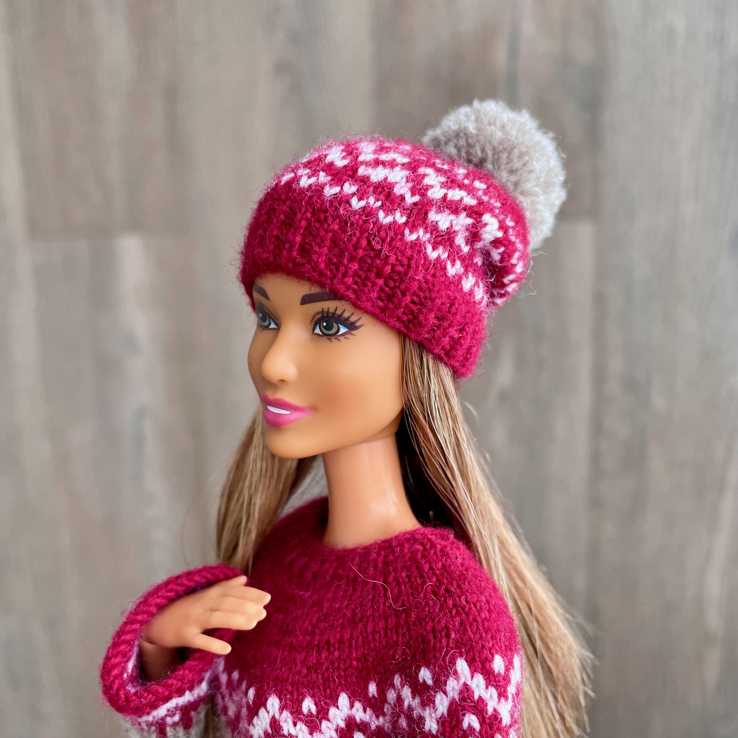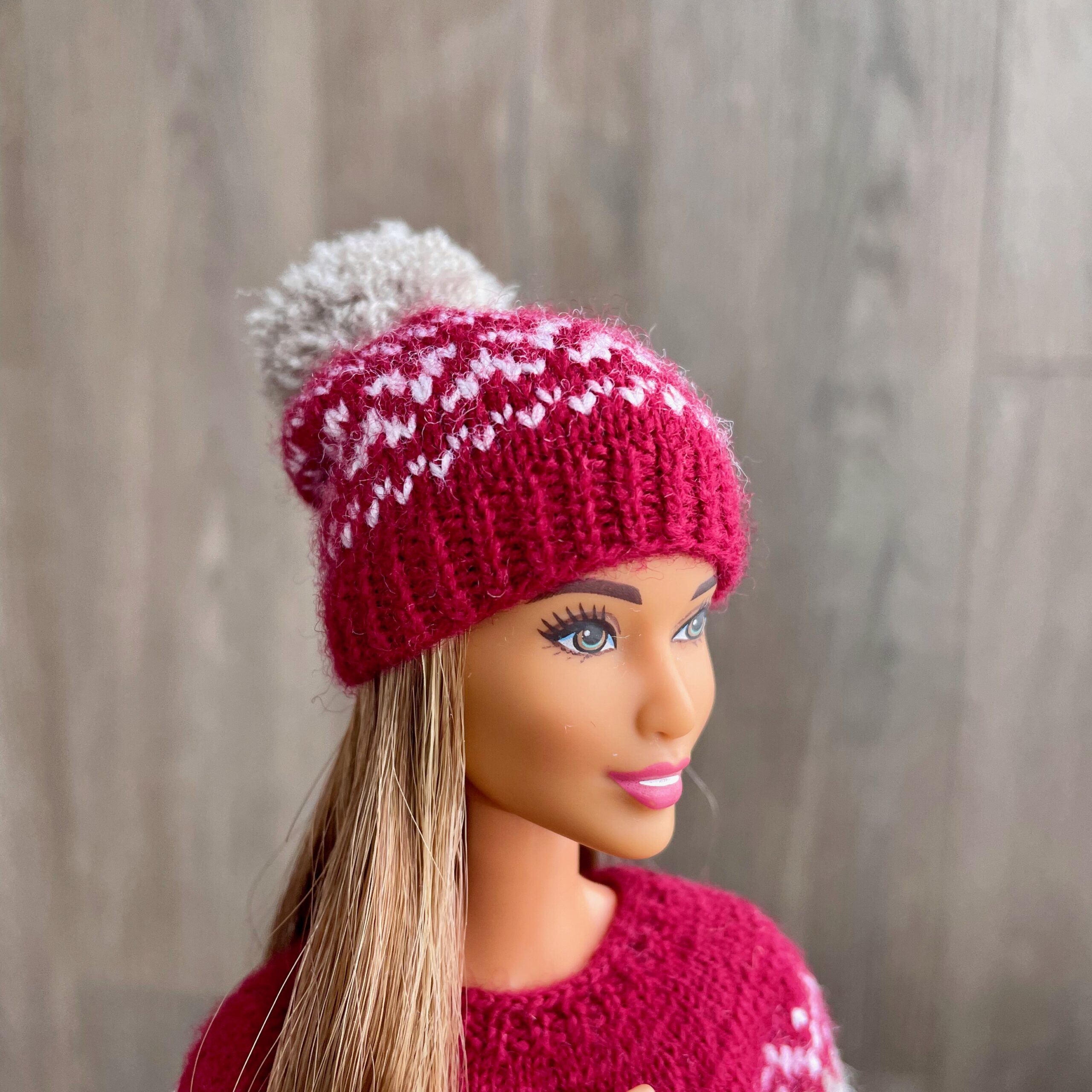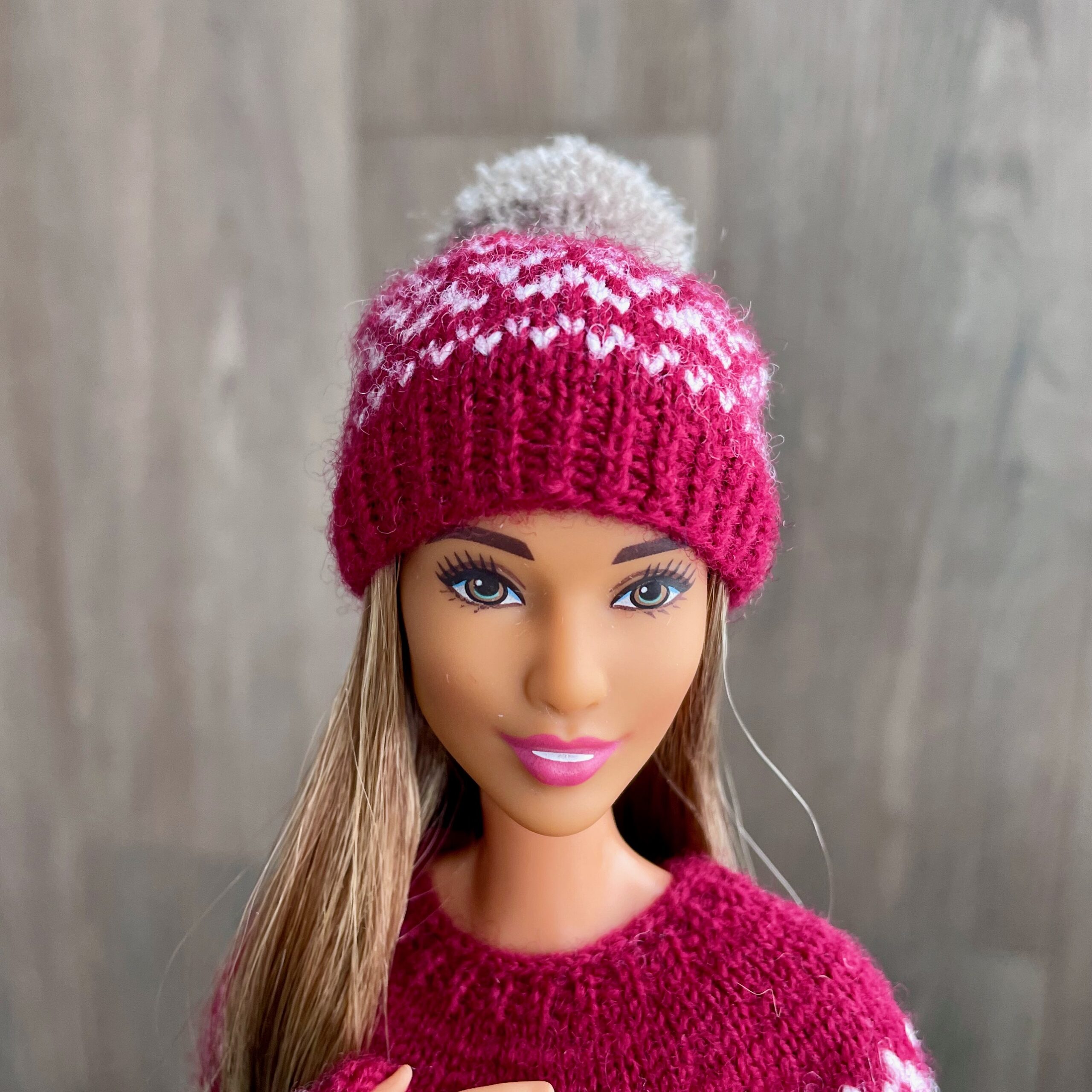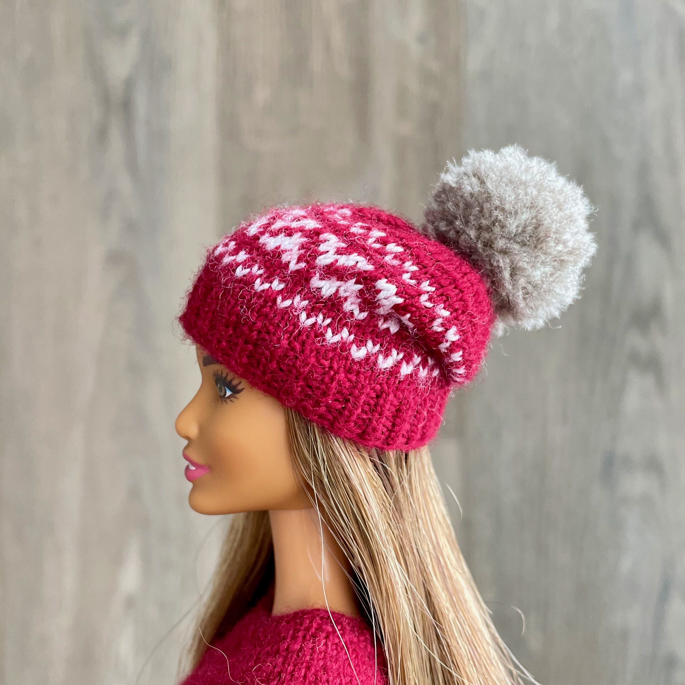 Мастер-класс по вязанию спицами. Шапка с орнаментом для Барби.